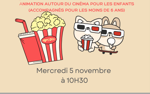 On se retrouve un mercredi par mois autour du cinéma : pour les enfants (les moins de 6 ans accompagnés d'un(e) adulte).